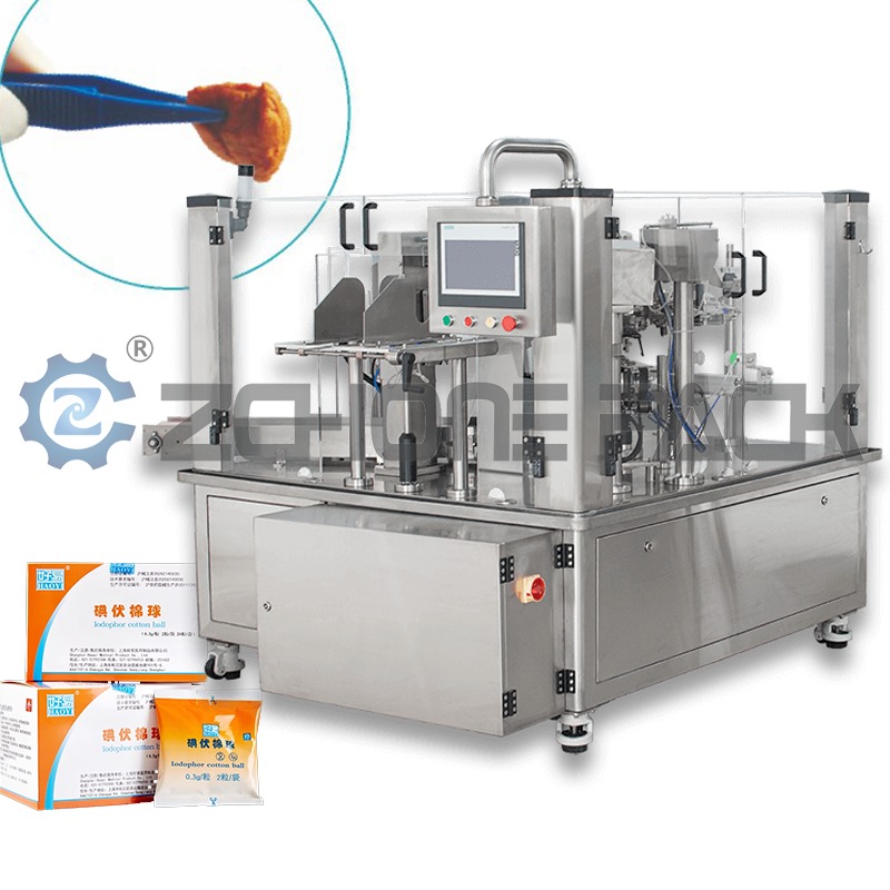 Povidone Iodine Cotton Ball Packing Machine Solid Plus Liquid Dual Material Máy đóng gói đa chức năng